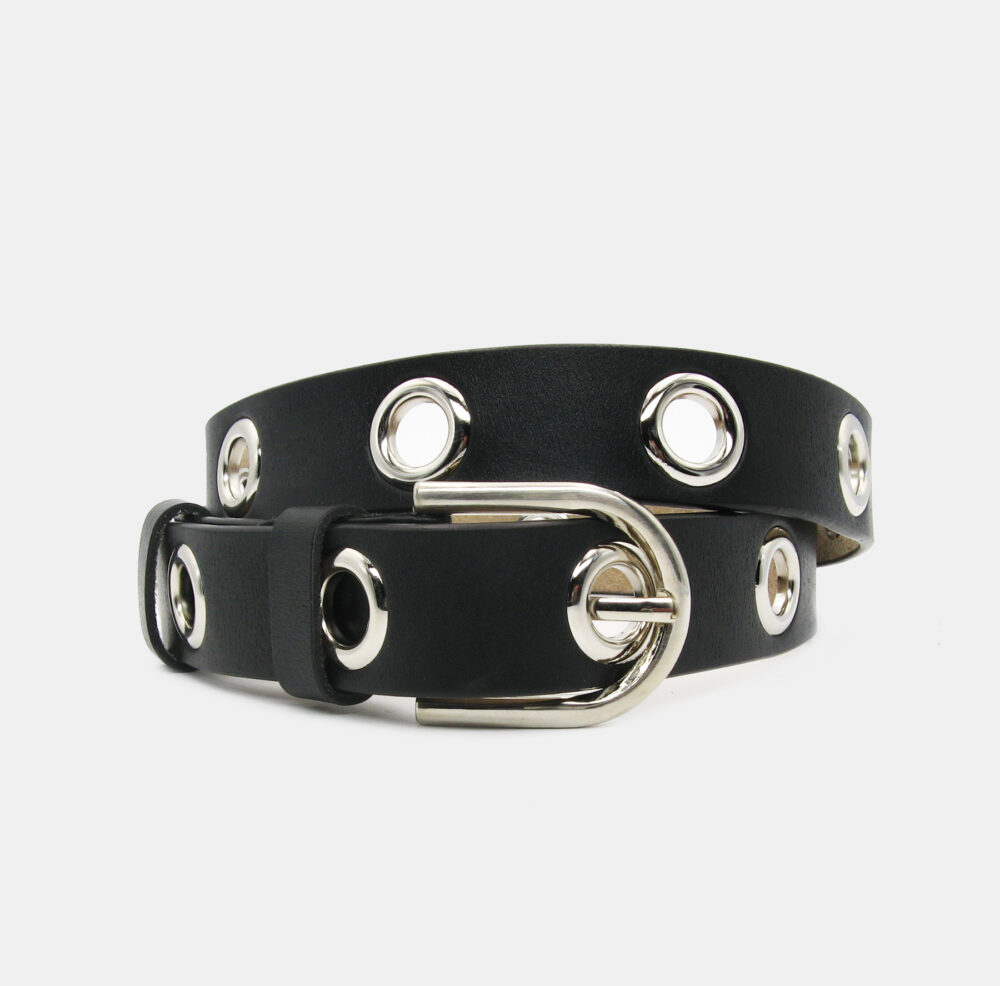 Fekete az időtlen szín, modern hatása minden összeállításba extra stílust csempész. Az övet a látványos, kőralakú szegecsek teszik igazán különlegessé – vagány megjelenést kölcsönöz a szettjeidnek.