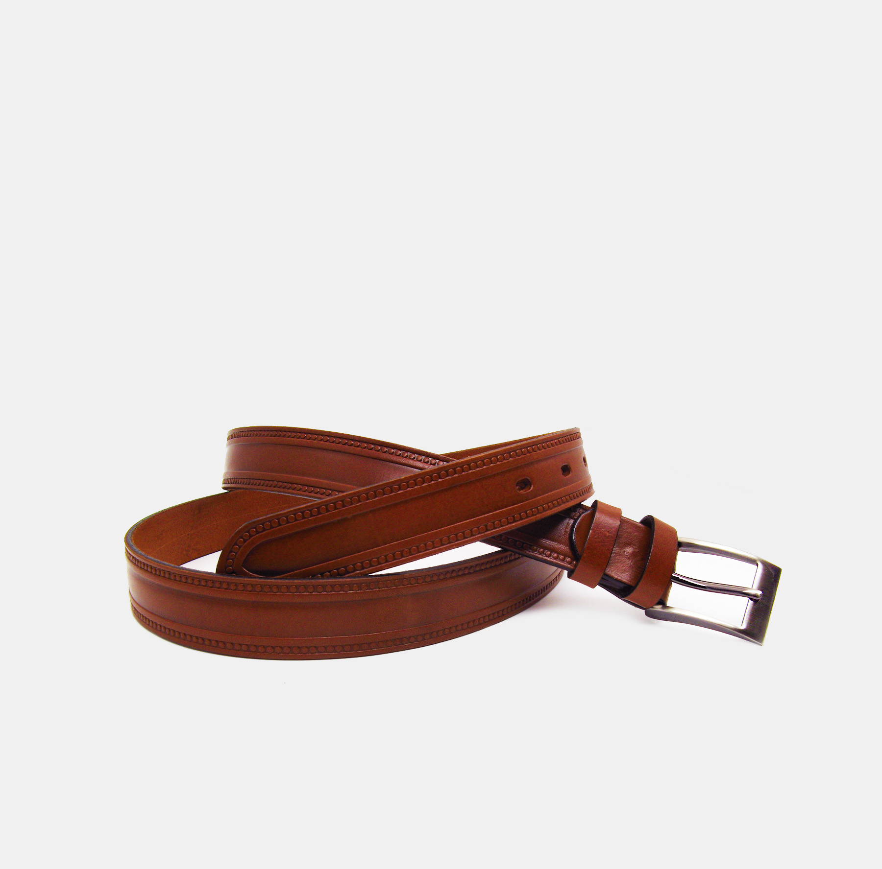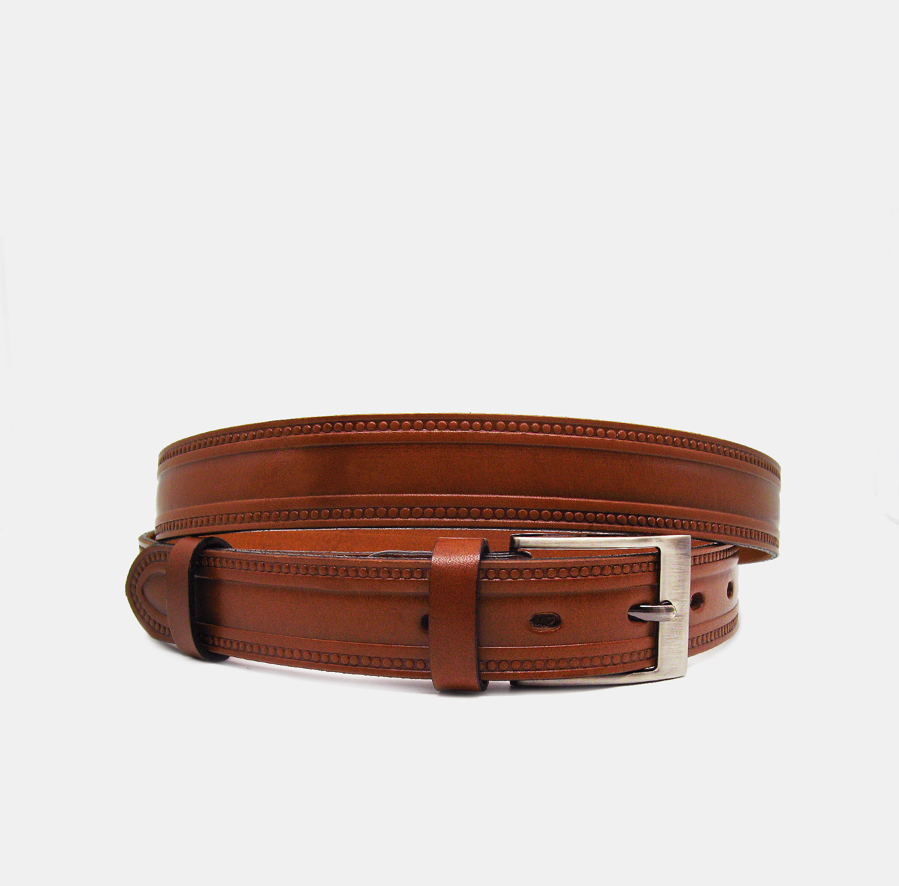 Férfi barna elegáns nyomott kör mintás bőr öv – 3 cm széles