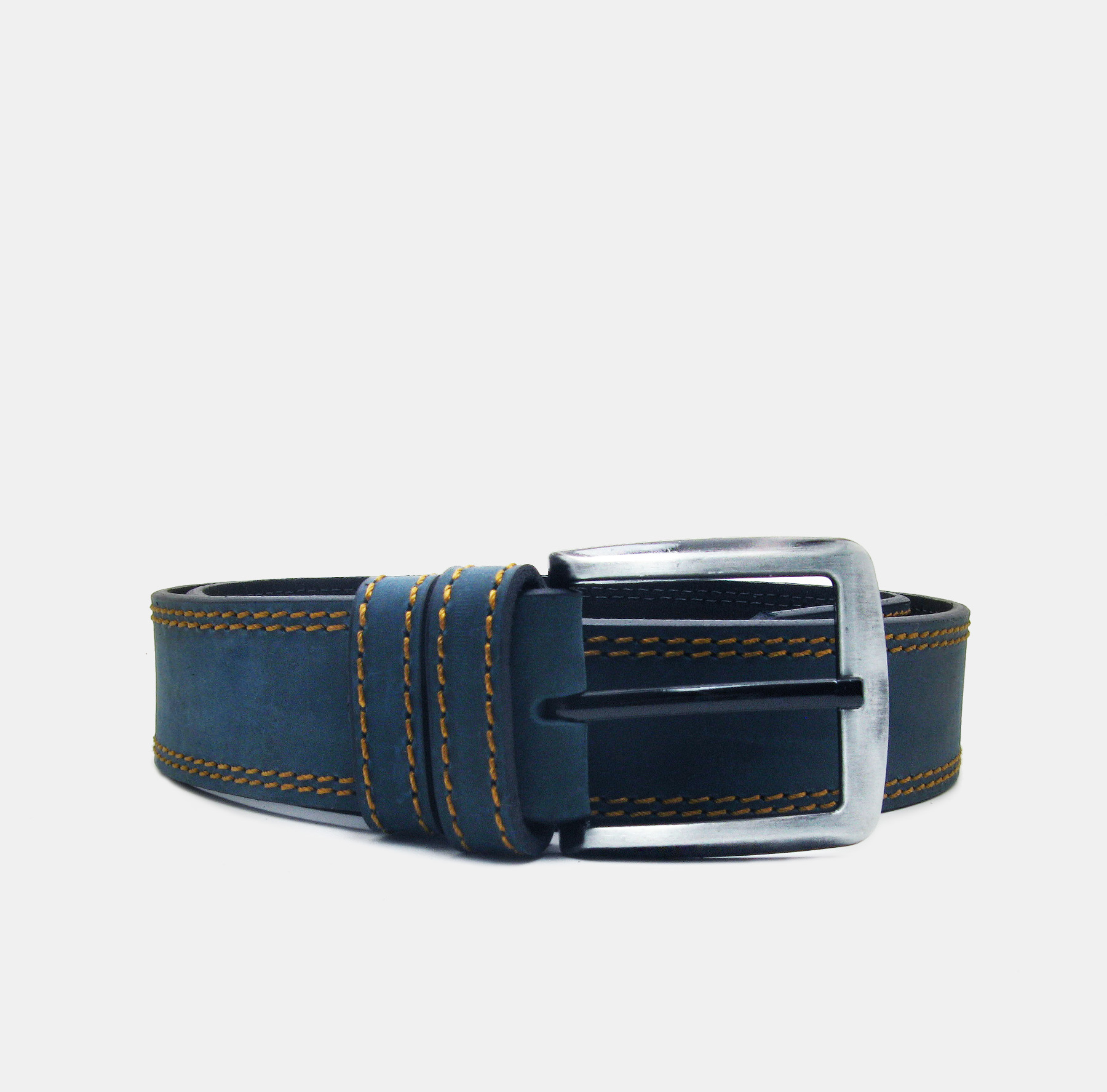 Ez a farmerkék antikolt valódi bőr öv igazán mutatós és karakteres kiegészítő. A készítő a saját fantáziája által alakítja ki az antikolt hatást, amig a bőr természetes mintázata szépen kirajzolódik. A matt felület pedig prémium, férfias megjelenést kölcsönöz az övnek. A duplán varrott tűzés tovább erősíti az egyedi, kézműves hatást.