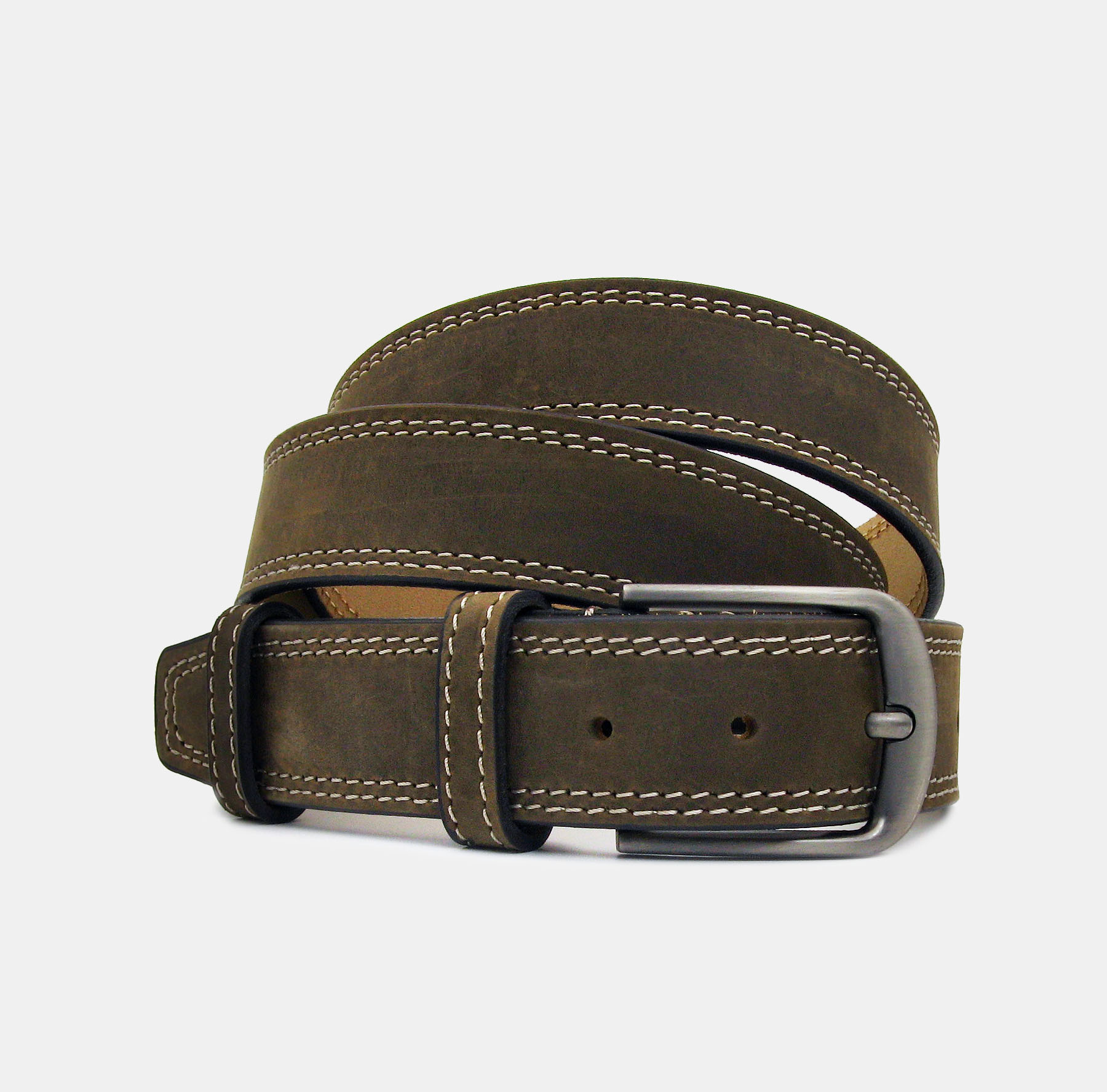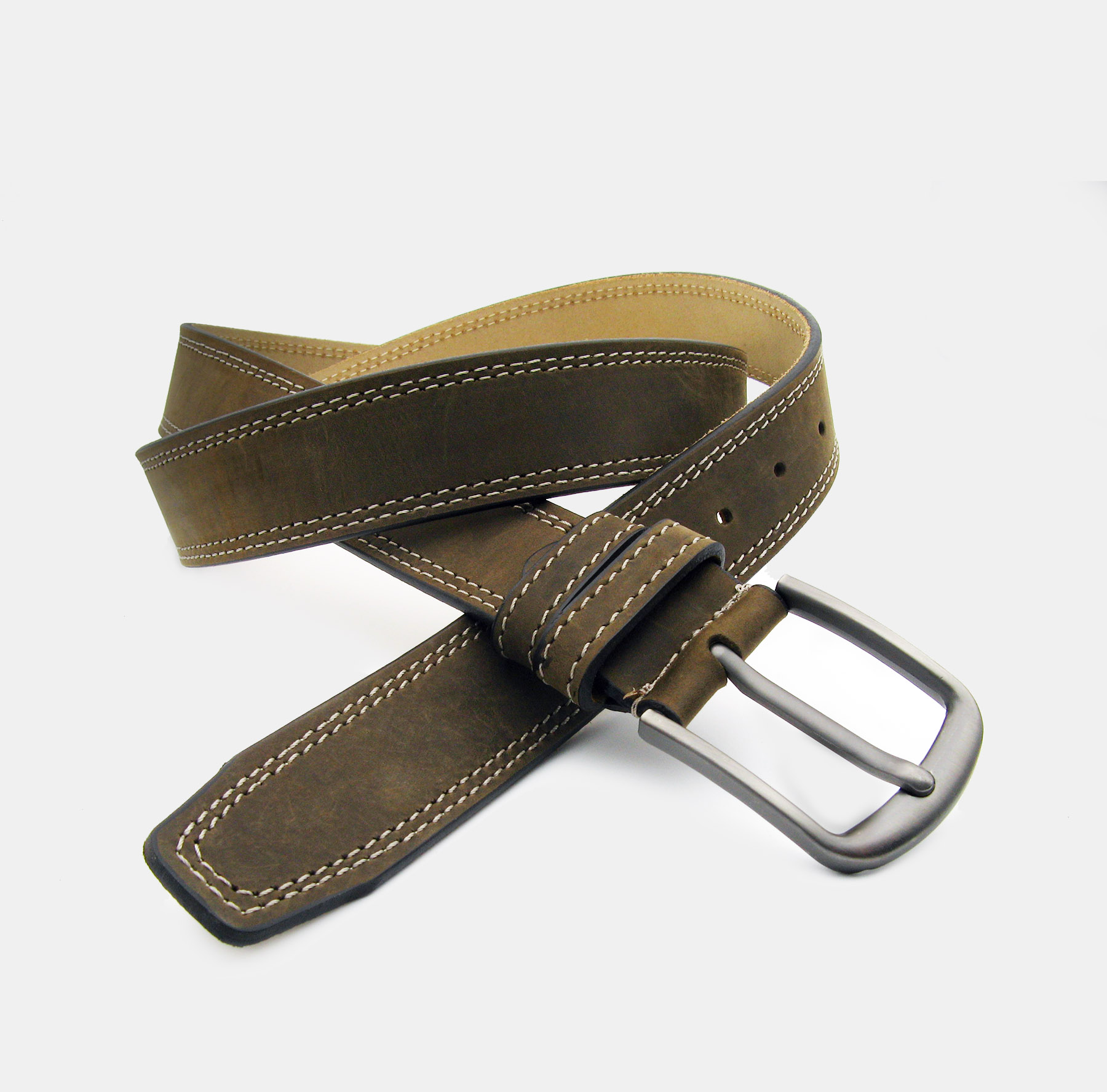 Khaki antikolt valódi bőr öv, duplán varrott